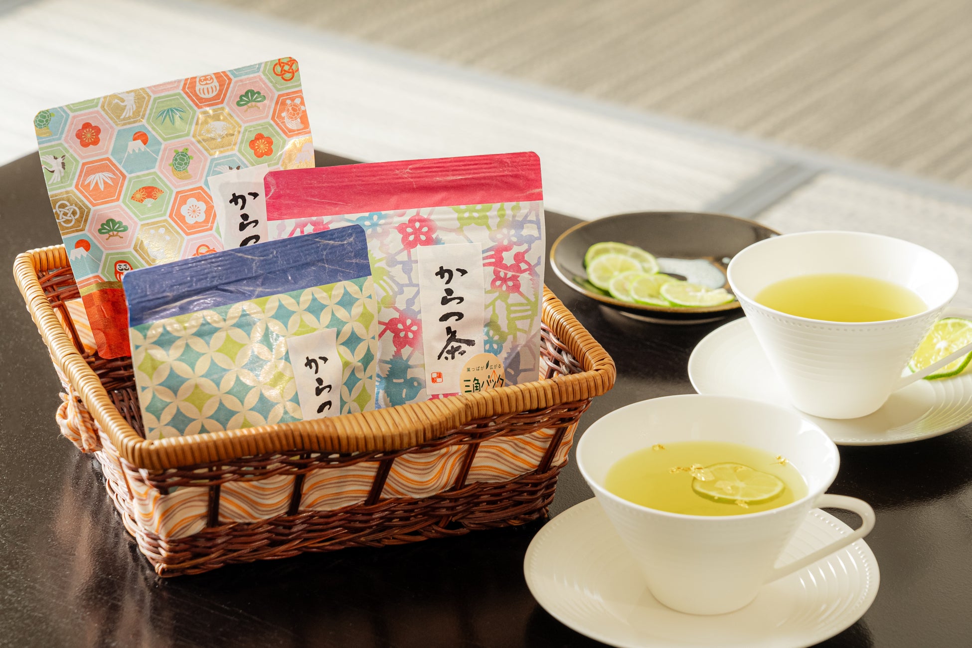 佐賀県唐津市の自然に育まれた銘茶「からつ茶」、柚子スライス、そして古来より財運や繁栄の象徴とされる縁起物の金箔(1室につき1瓶)を客室に用意します。からつ茶は、唐津産茶葉を使用した香り高い玉緑茶で、渋みが少なく、まろやかな味わいが楽しめるのが特徴です。冬に旬を迎える柚子は、その強い香りが邪気を払うと信じられ、江戸時代には「一陽来復」を迎える前の厄払いとして柚子湯に浸かる習わしがありました。(*)その風習にちなみ、本プランでは、柚子スライスを浮かべた柚子茶に金箔をあしらい、華やかで縁起の良い一杯を楽しんでいただけます。また金箔は、オリジナル御朱印帳づくりのアクセントとしても活用できます。