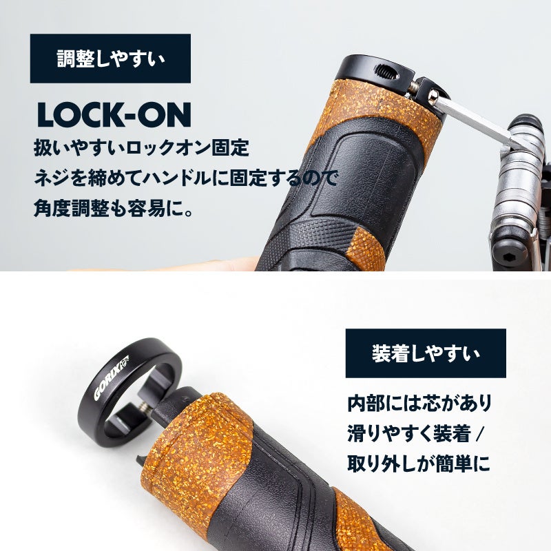 取付上の注意 | ロックオンのネジはグリップが動かないように確実に締めて下さい。 |