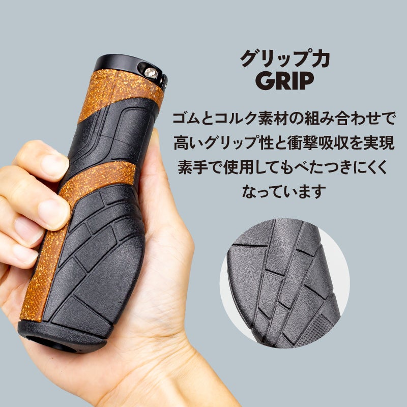 カスタマイズ性高いブラウン系のコルク素材を使用したエルゴグリップです。高いグリップ力と人間工学に基づくエルゴノミック形状です。