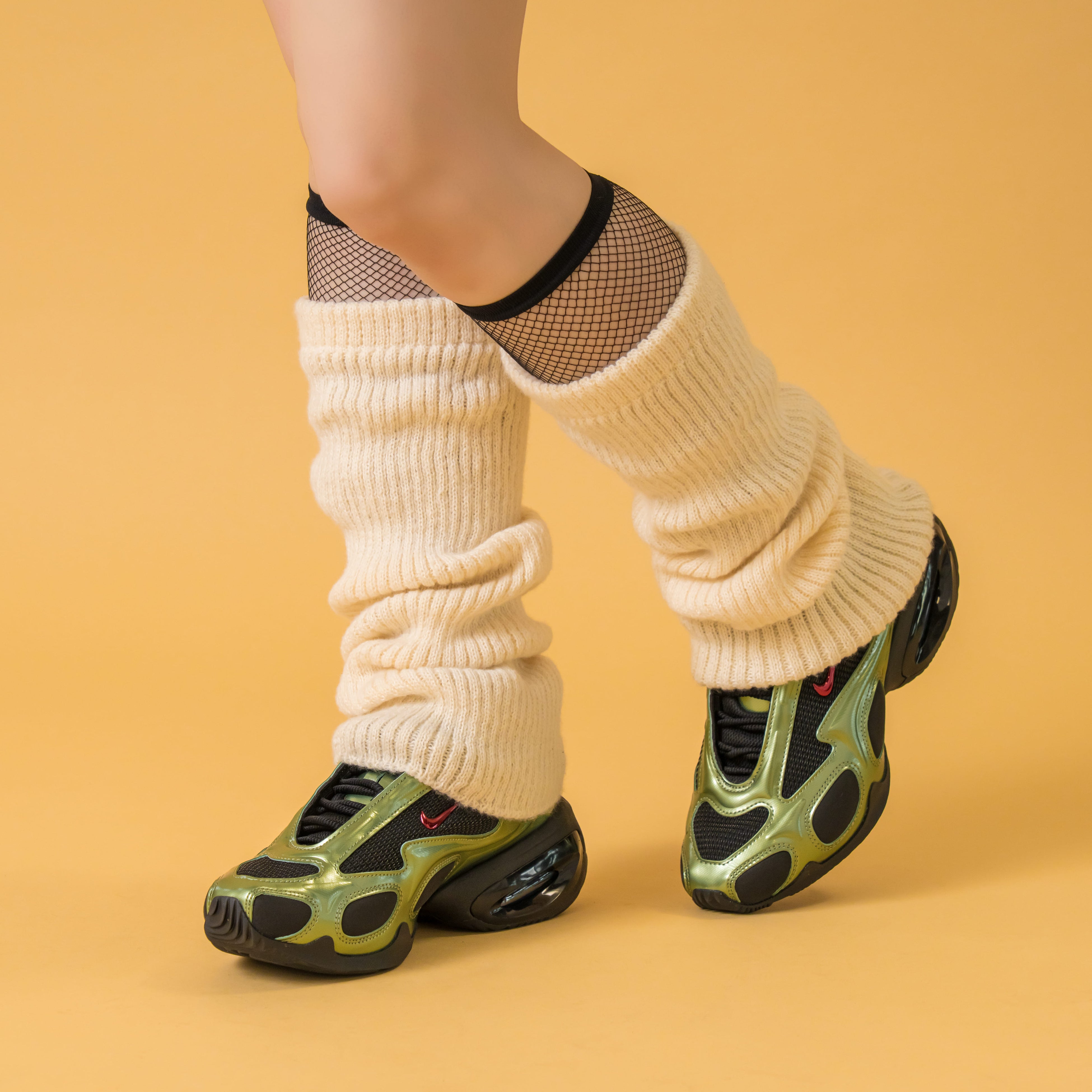一方、90年代後期から2000年代初期にかけて流行したルーズソックスや、ボリューム感のあるレッグウォーマーは、Y2Kテイストやストリートスタイルと相性抜群です。ミニ丈ボトムやワイドパンツの裾からちらっとのぞかせるだけで、コーディネートに立体感とリズムが生まれます。特に、ボリュームスニーカーやブーツと組み合わせることで、現代的なストリートスタイルにも自然にフィットするのが魅力です。