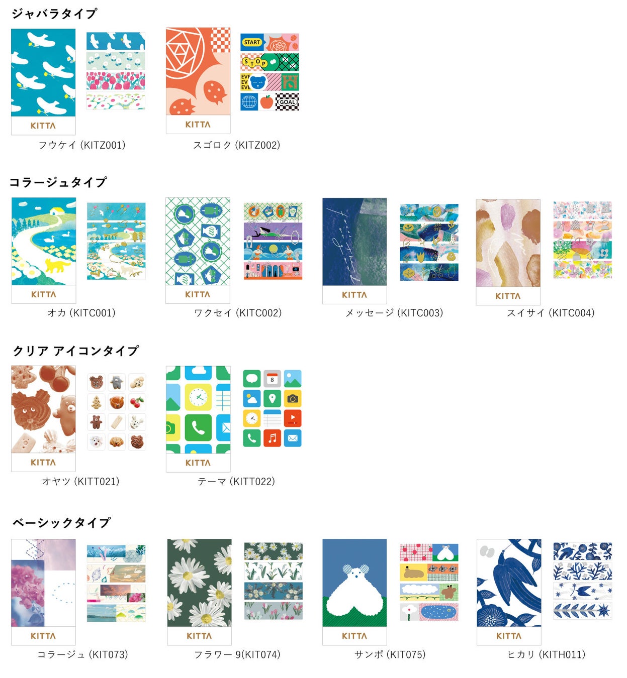 人気の花柄や箔タイプなどを追加しました。「サンポ(KIT075)」は同時発売するHITOTOKI NOTE リングノートタイプの「ヌイグルミ(HN-PR03)」「サンポ(NH-CR03)」とリンクしたデザインです。