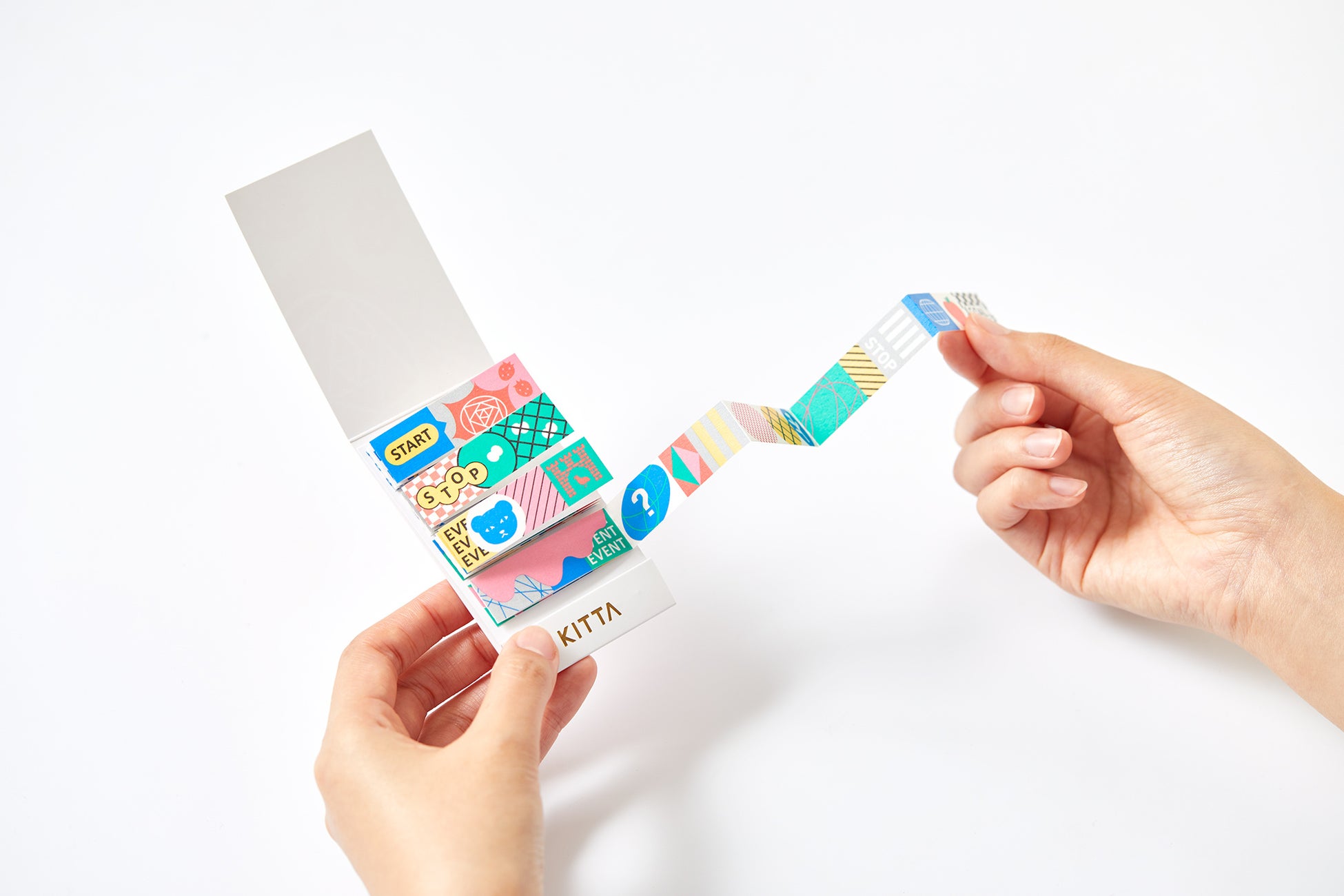 「KITTA(キッタ)」は、マスキングテープがロール形状でかさばってしまい、複数のテープを同時に持ち歩きづらいといった不満点に着目して開発された、新しい形のマスキングテープです。2016年6月の発売以来、シリーズ累計販売冊数は450万冊を突破し、ユーザーの皆様に好評をいただいています。
