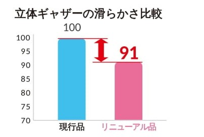 ・立体ギャザーの滑らかさ比較(数値が小さい方が滑らか)※7