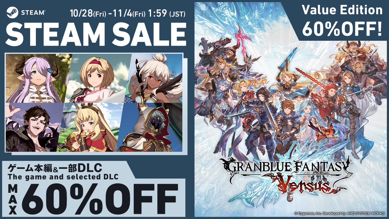 - 『グランブルーファンタジー ヴァーサス』ゲーム本編が60%OFFの871円に! DLCもお得に購入できるSteam®セールを期間限定で開催中!
