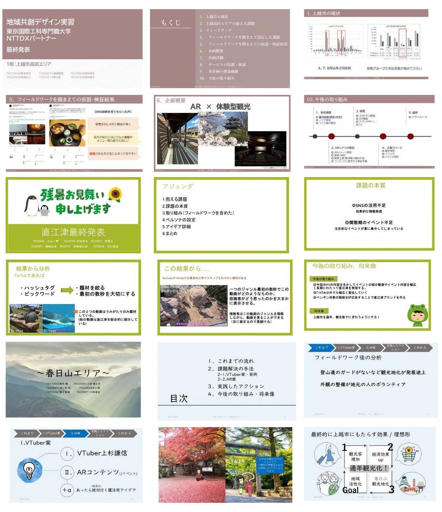 延べ90時間以上のオフライン/オンラインでの学生、指導教官、社会人メンターとのディスカッションやメンタリング、フィールドワーク、プレゼンテーション、上越市幹部や担当官からのフィードバック、レポーティング等
