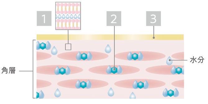 ②天然保湿因子(NMF)…水分をつかまえ、角層をうるおわせる。