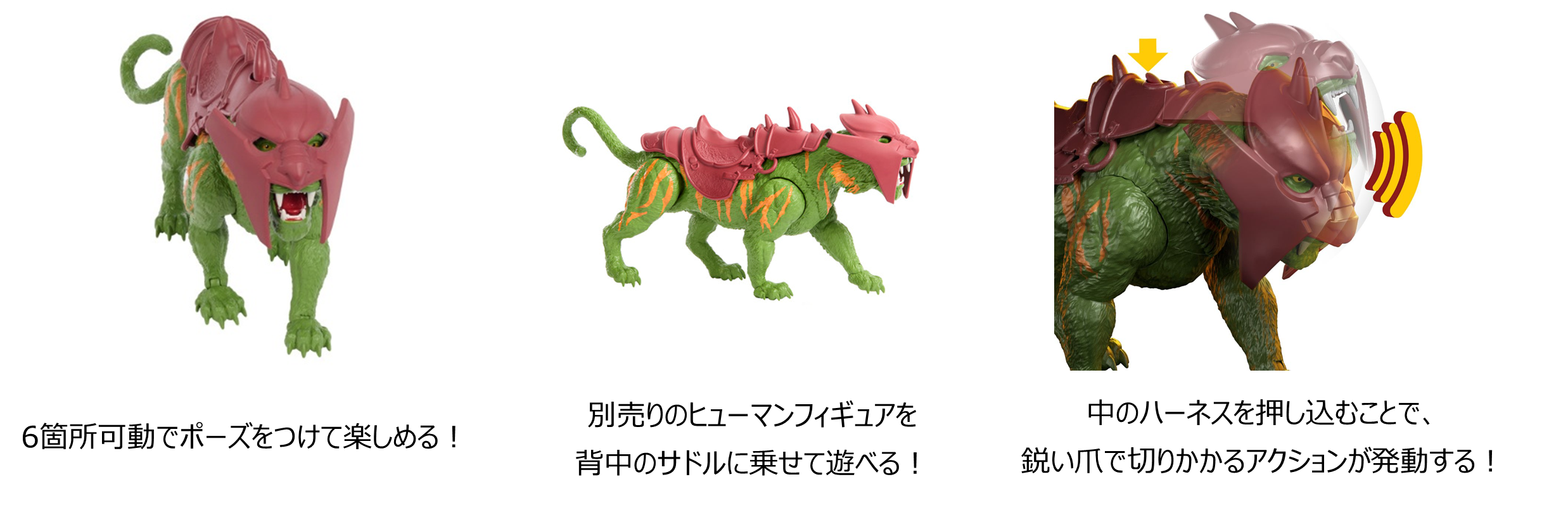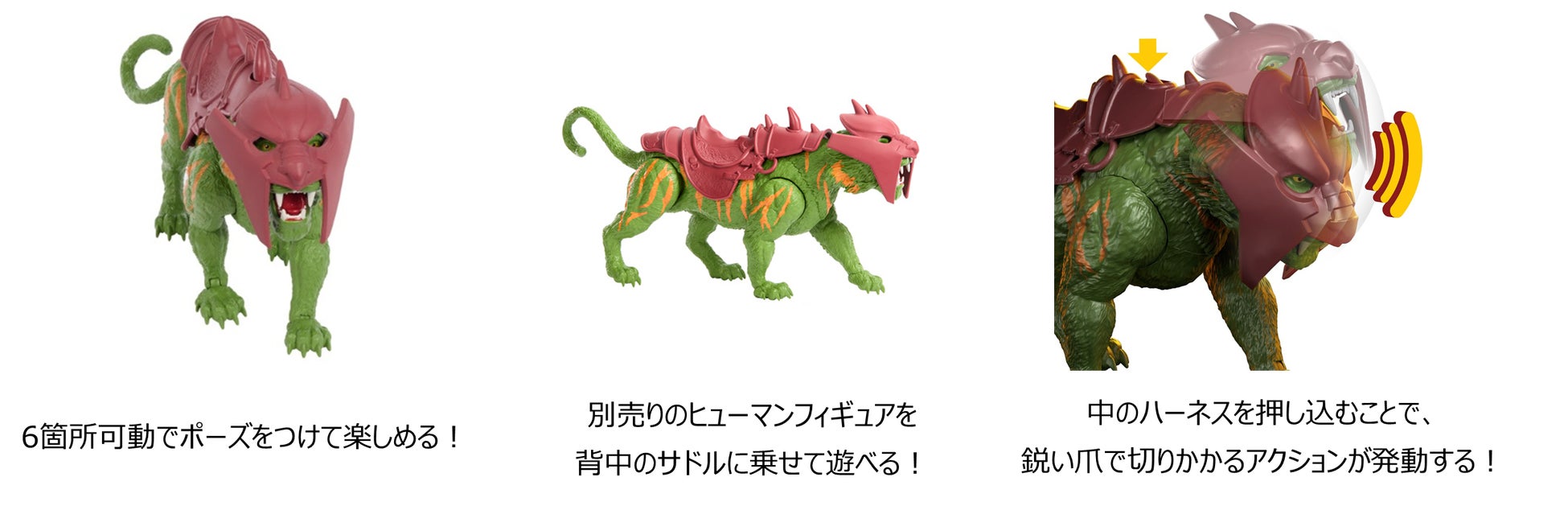✓ 鋭い爪で切りかかるギミック付きの「マスターズ・オブ・ユニバース ほえる!かみつく!