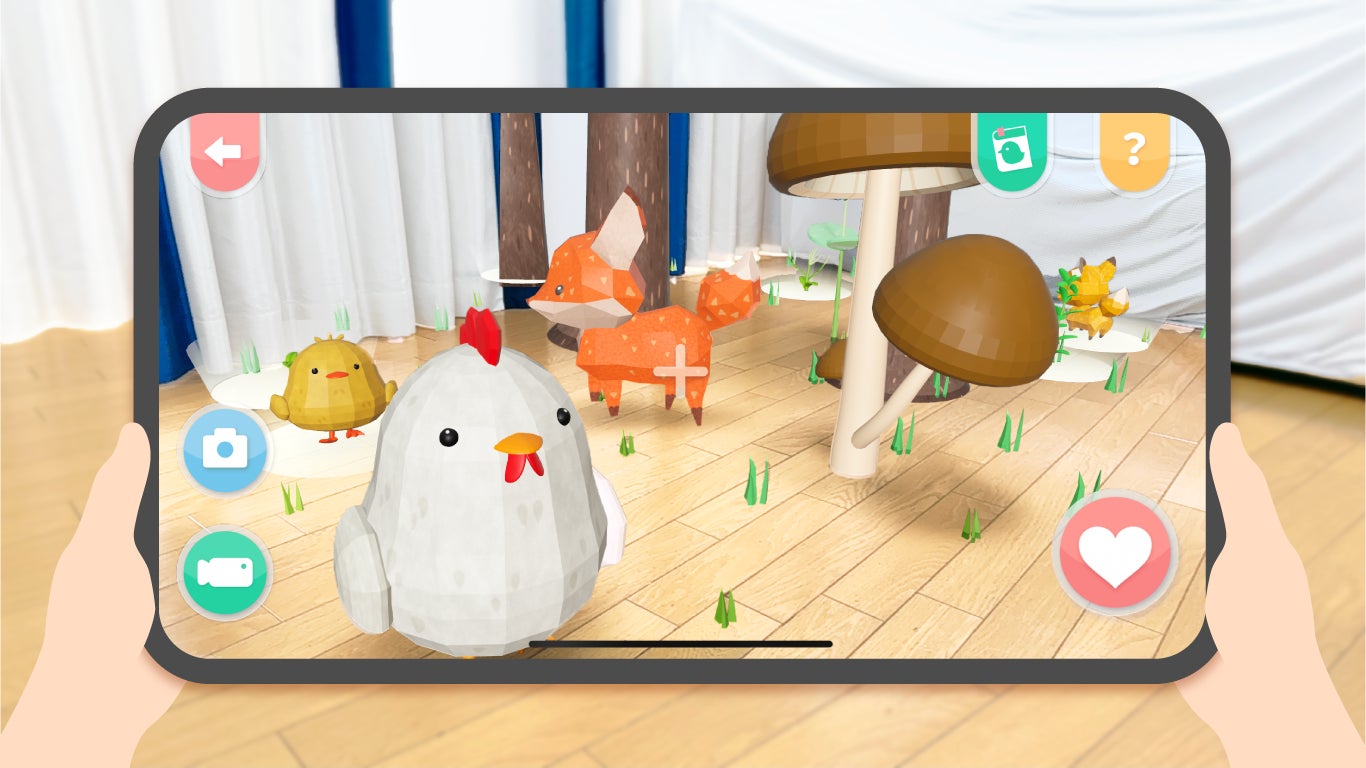 動物をタップすることで鳴き声を聞いたりジャンプしたり、かわいらしい動物たちの姿を観察すること