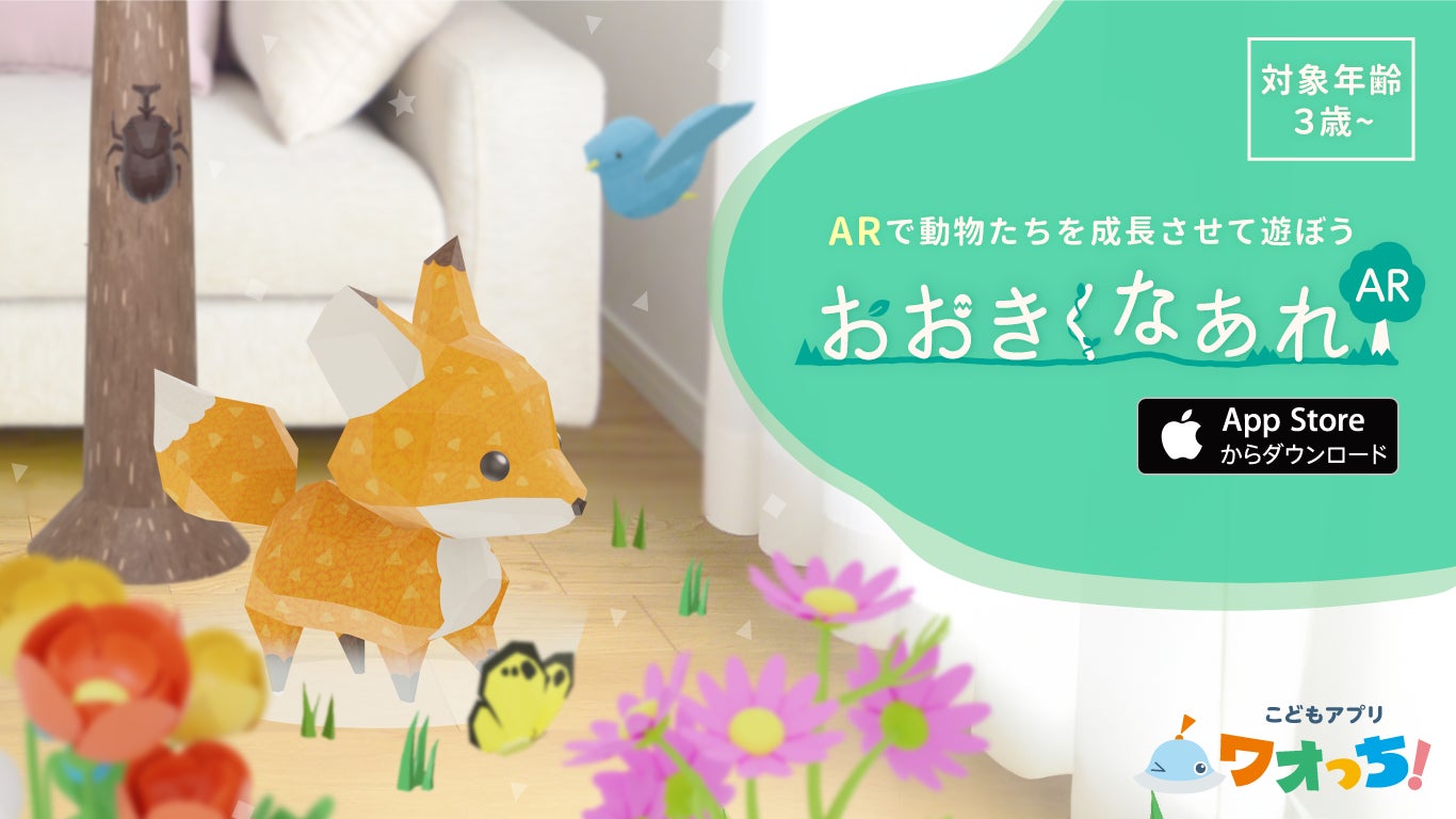 1,900万ダウンロード突破の大人気子ども向け知育アプリシリーズ「ワオっち!」が、ARで広がる3Dの動物たちの世界で楽しく遊べる『おおきくなぁれAR』をリリース! 12/23(月)より配信開始