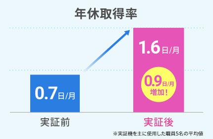 そこで姫路市では、2024年1月~2月、通話内容を自動でテキスト化(文字起こし)し記録作業の負荷を軽減するべく、「AmiVoice Communication Suite」を活用した実証実験を実施。「記録作成に要する残業時間」が月平均16時間から月平均5.5時間まで短縮され、記録の質も向上しました。また「年休取得率」についても、実証前の月平均0.7日から月平均1.6日になり0.9日の改善が見られました。