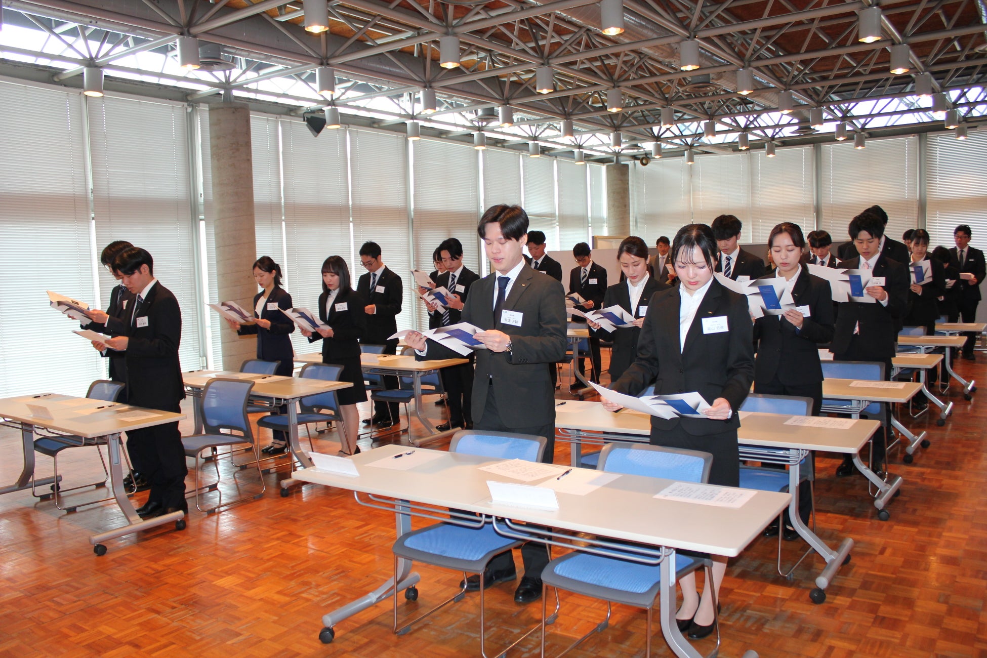 その後、新入社員を代表して総合職の山本映が挨拶し、誓いの言葉を力強く宣言しました。