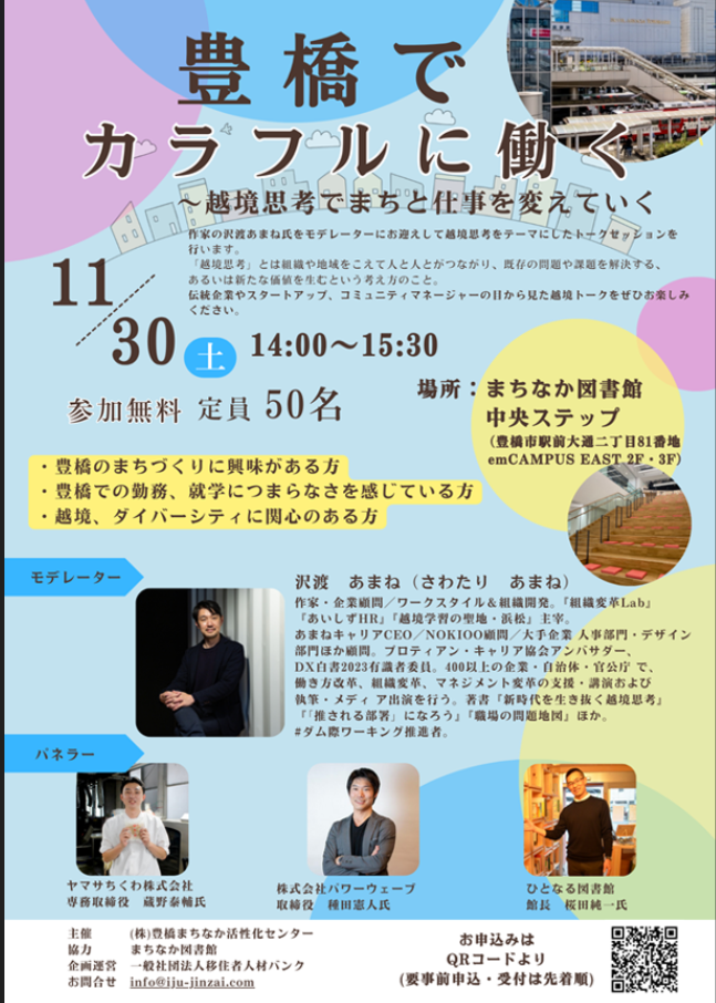 豊橋の伝統企業やスタートアップ、コミュニティーマネージャーが登壇し地域の仕事やまちづくりについて語ります‼