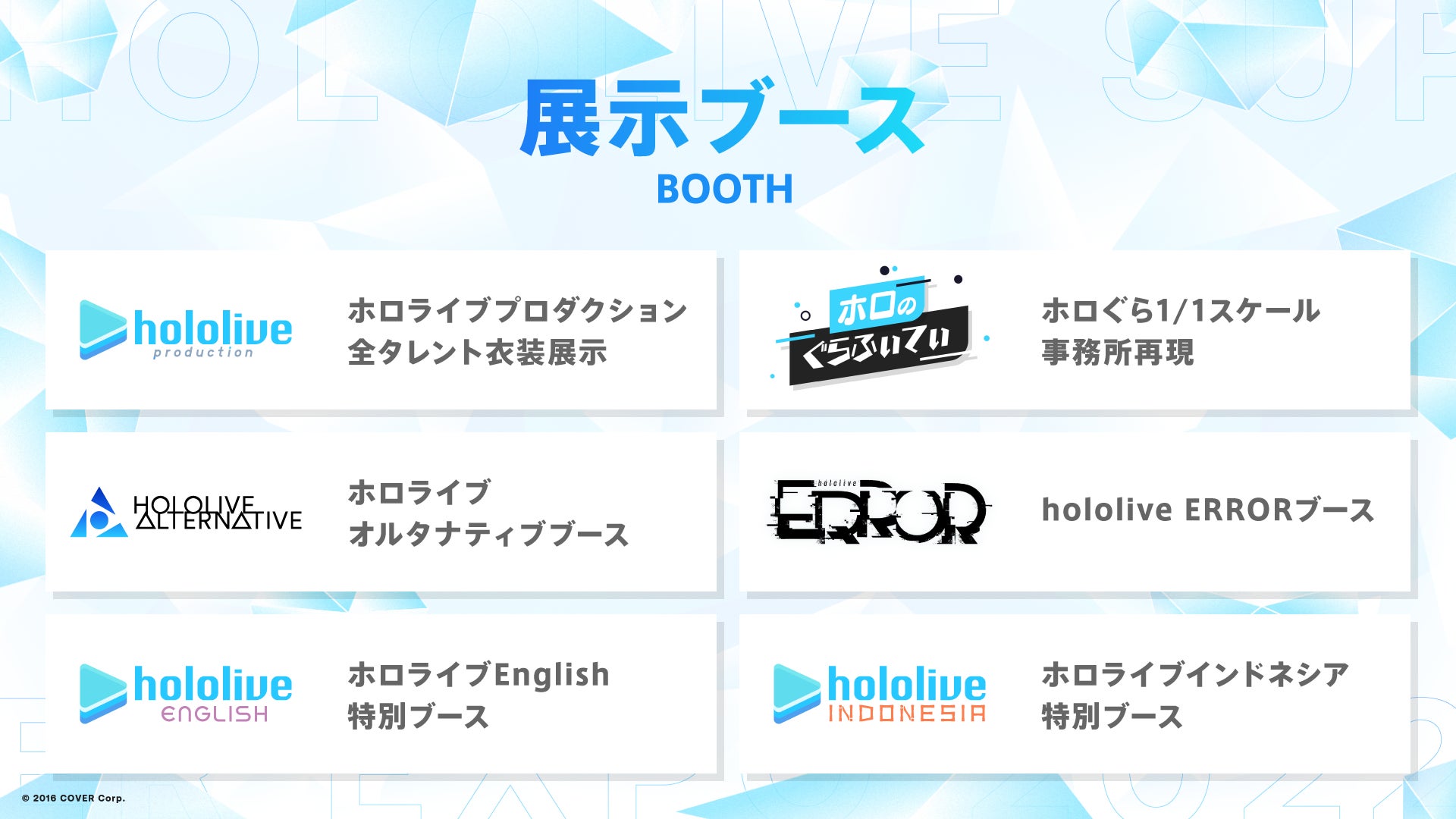 「ホロライブプロダクション」ならではのこだわりが詰まった展示ブースやイベントステージになっておりますので、ぜひお見逃しなく。