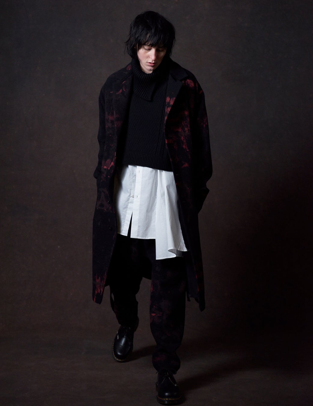 クラシックなストリートカルチャーの要素、トラッドを崩した表現が、ワイズのシルエットに重ねられ、ブラック、レッド、カーキ、あるいは崩れた色でつくられる。無造作につくられる、雑多な街の空気と鋭利な感性が内包された強くしなやかな服。