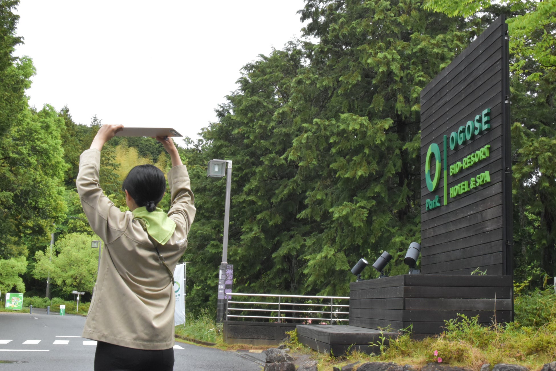オーパークおごせの敷地内にある展望台からヤッホーと叫んで、チェックインが完了するサービス。ヤッホーという声をスタッフが聞き取れたら、オリジナルスイーツの「湯あがりミルクチーズケーキ工房 ふろまあじゅ」をおひとつプレゼントいたします。里山の自然に囲まれたオーパークおごせで、周囲を気にすることなく、大声で叫んでいただければと思います。