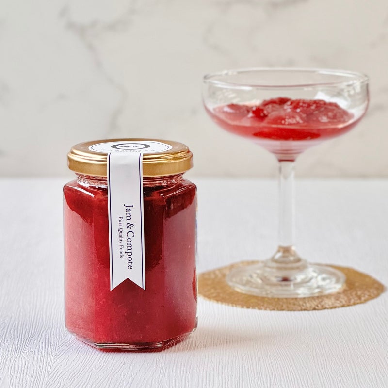 ジャムに適した小粒で酸味と香りの強い国産の苺をふんだんに使用しています。 いちご・甜菜糖・レモンだけで作るジャムは、いちごの粒がまるごと残っているのが特徴で、これは長年磨きあげた職人の技によるものです。酸味と甘みの絶妙なバランスと粒をかみしめた時に感じるいちご本来の味わいをお楽しみください。