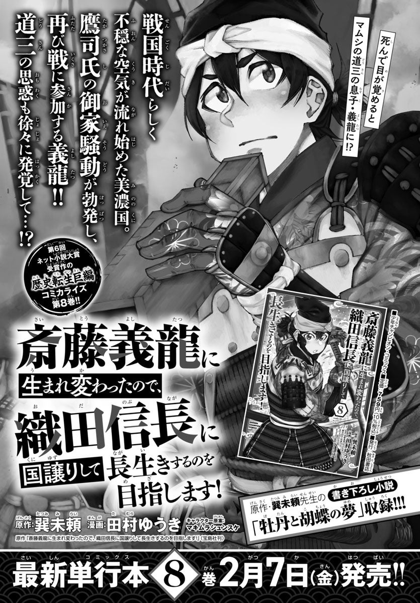 <タイトル>『斎藤義龍に生まれ変わったので、織田信長に国譲りして長生きするのを目指します!』