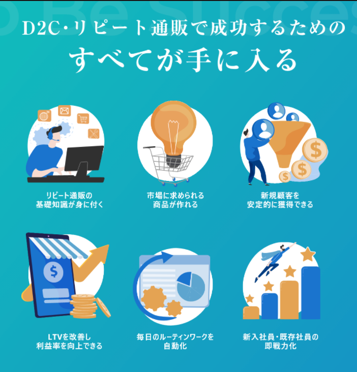 サブスクD2C(リピート通販)に関する基礎から最先端のノウハウまでを学ぶことができます。