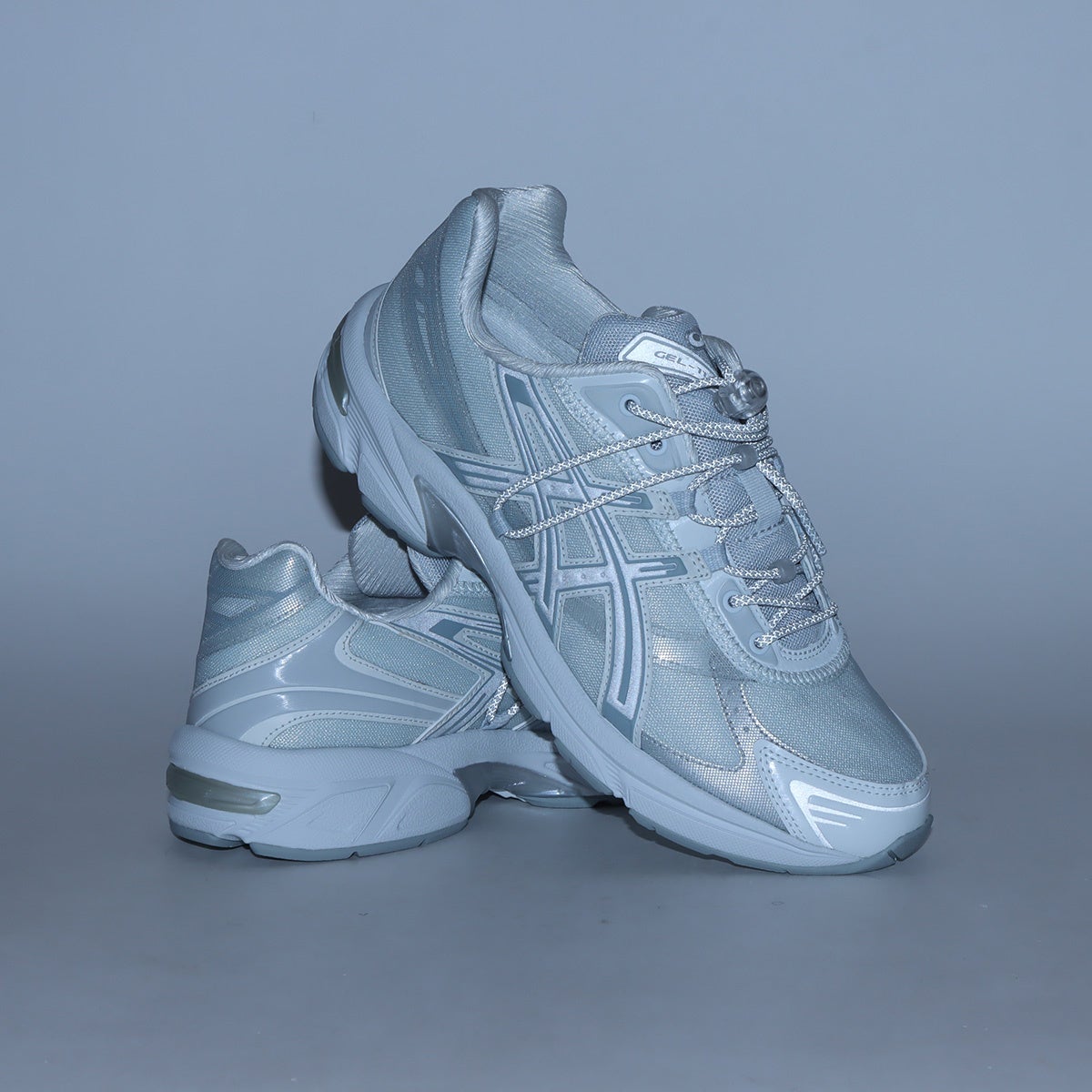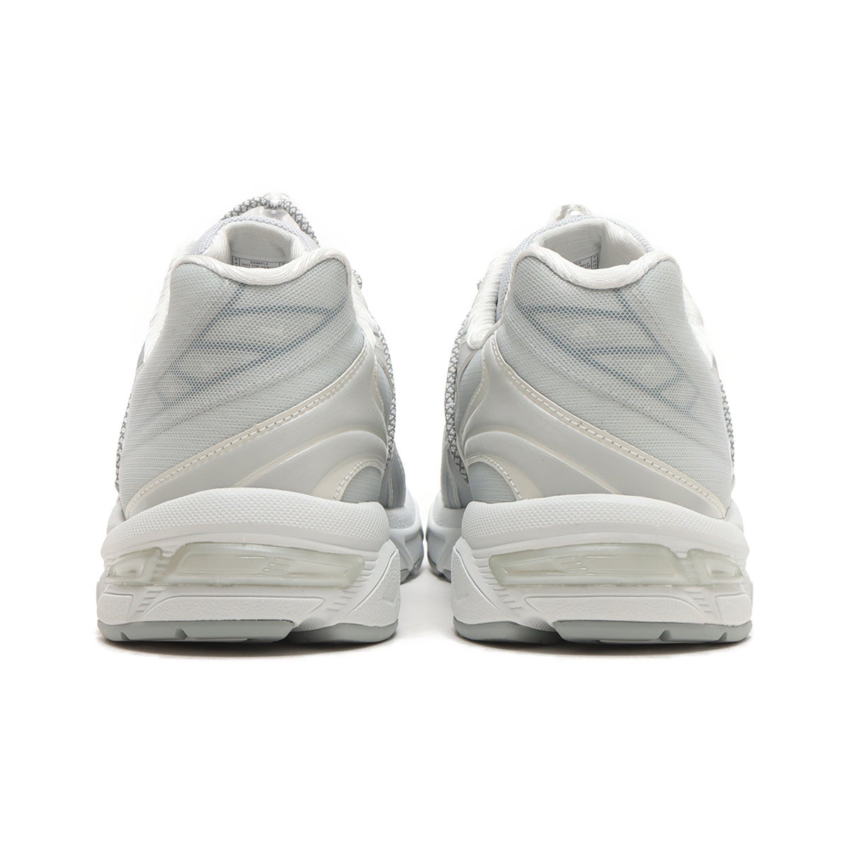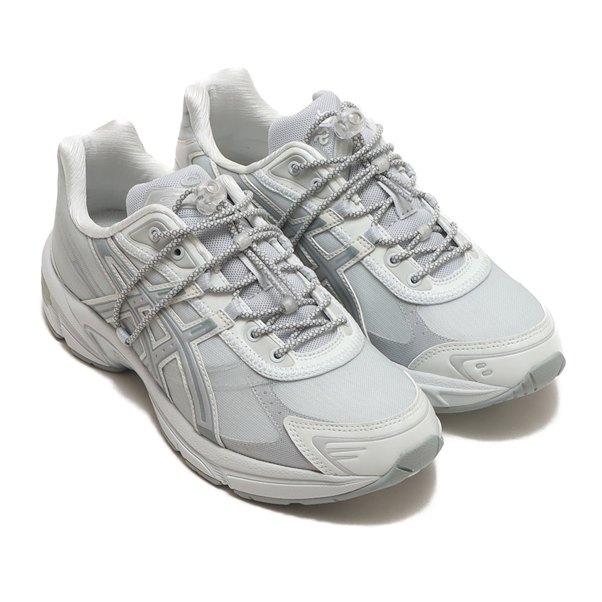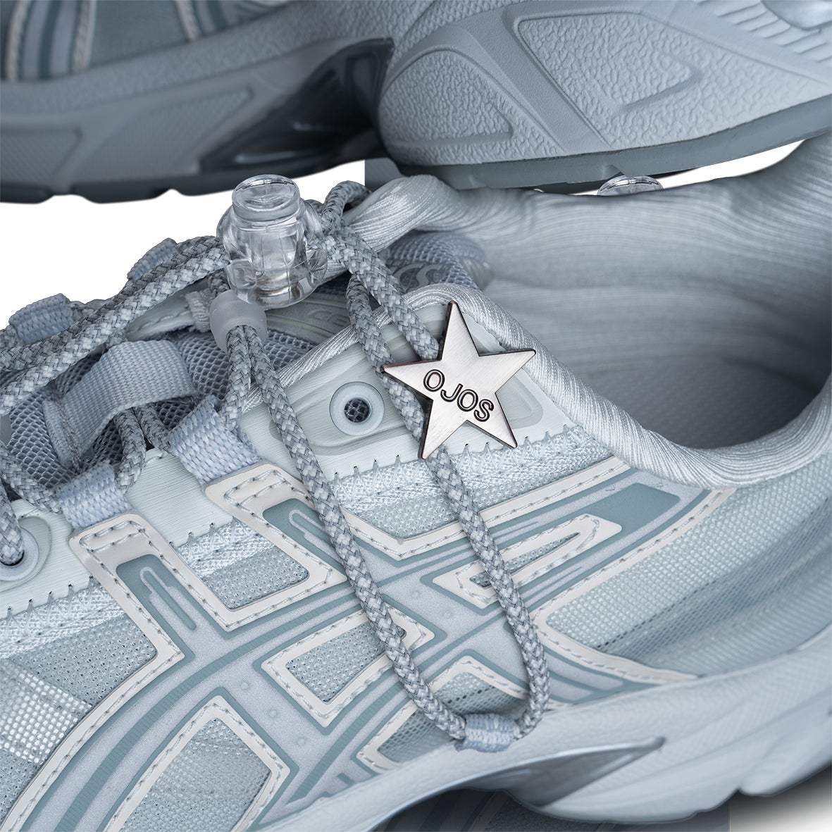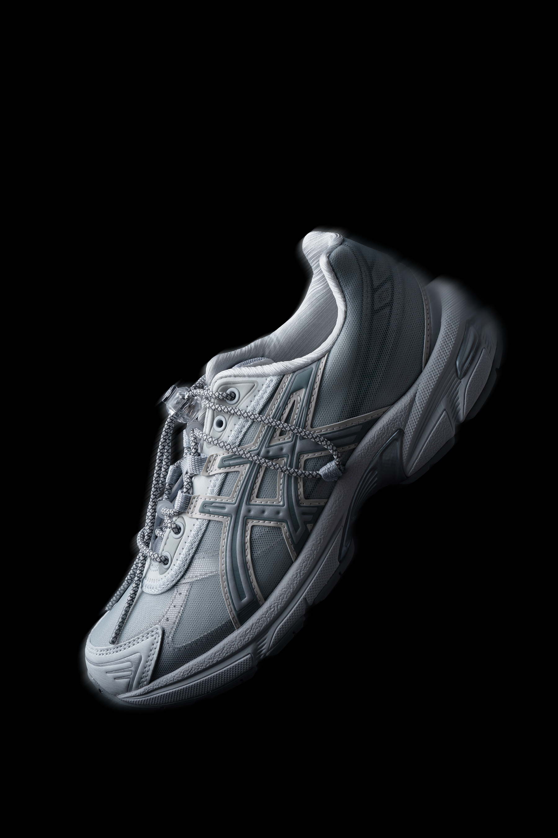 今回ピックアップされたGEL-1130は、トラスティック構造による作用で高水準な安定性を提供するハイテク型として「ASICS」が2008年に打ち出したモデル。ソールのかかと部には、「ASICS」が誇るGELテクノロジーを搭載してクッション性にも特化。そんなハイパフォーマンスな本作を、「OJOS」のアイコンカラーであるグレイで染め上げ、素材には、フューチャリスティックなフレーバーを醸し出すためにクリアパーツやリフレクターでアレンジしました。