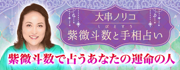 人気占いバラエティ番組出演で今大注目の鑑定士・大串ノリコが監修する、紫微斗数(しびとすう)と手相占いに特化したスマホ専用月額占いサイト『大串ノリコ 紫微斗数と手相占い』。現在『運命の人占い|紫微斗数で占う相手の全特徴・出会う日【無料】』を公開中です。あなたの運命の相手が無料で占えるこの機会をぜひご利用ください。