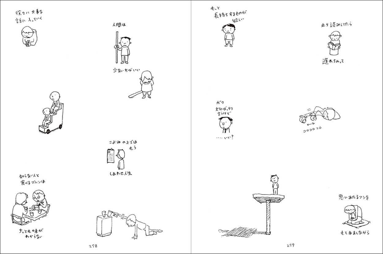 思わず「あるある!」と笑いがこぼれ共感してしまう…。何気ない日常のひとコマを、独特の視点と軽やかな線で切り取ったスケッチを、たっぷり294ページ収録! ページをめくるたび、まるでノートのはしに描いたラクガキが動き出しそうな楽しさが広がります。