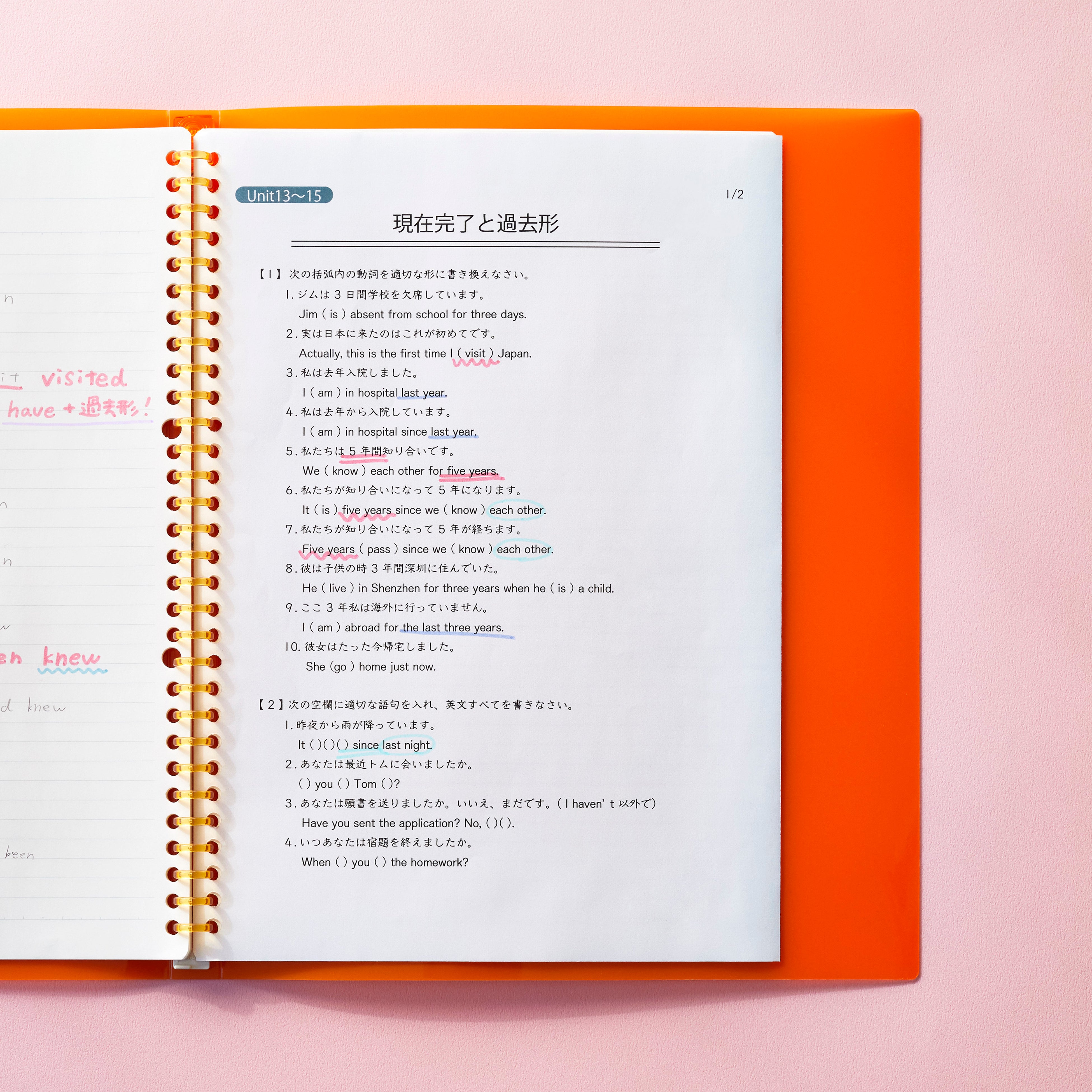 プリントに穴をあけることで、ルーズリーフと同じようにバインダーにとじることができます。