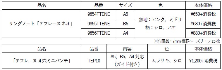 書くときに“リングが手にふれない”「テフレーヌ」シリーズに新ラインアップ追加!リングノート「テフレーヌ ネオ」、「テフレーヌ 4穴ミニパンチ」発売