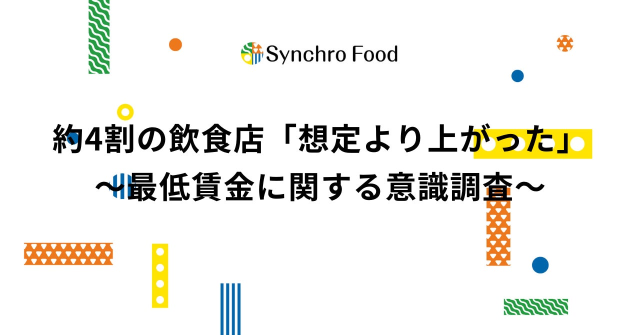飲食店の出店・開業・運営に役立つサービスをワンストップで提供する「飲食店ドットコム」を運営する株式会社シンクロ・フード(本社:東京都渋谷区、代表取締役:藤代真一、東証プライム市場:3963)は、飲食店ドットコム会員を対象に、最低賃金に関するアンケート調査を実施いたしました。