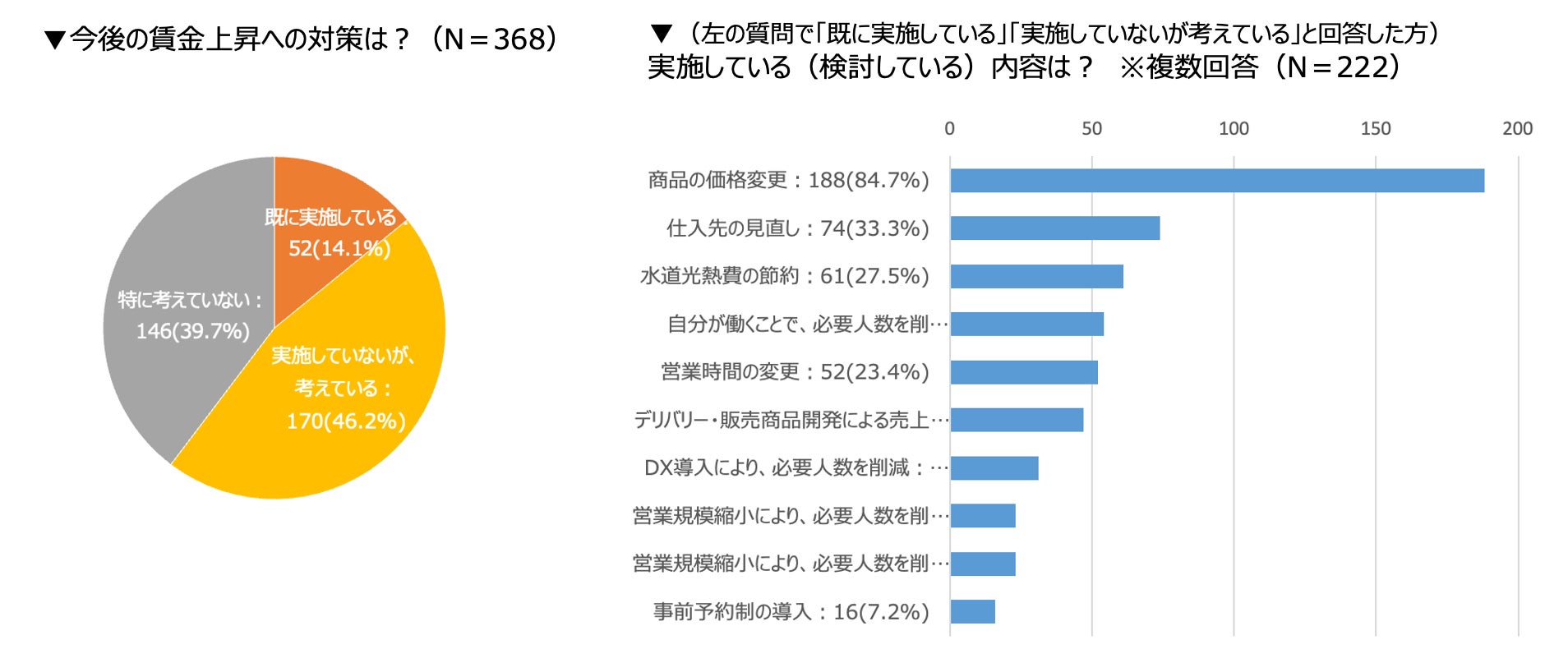 今後の賃金上昇に備えた対策を実施・検討している飲食店は60.3%