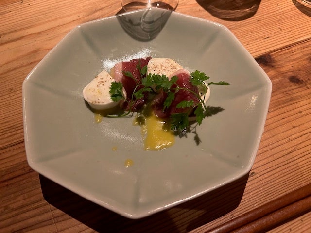 当日はグエン氏によるユドロ・バイエ厳選のワイン5種のストーリーとともに、十番 無鴨黒のシグニチャーである最上鴨をふんだんに取り入れた1夜限りの特別なコースをワインとともにお楽しみいただきました。