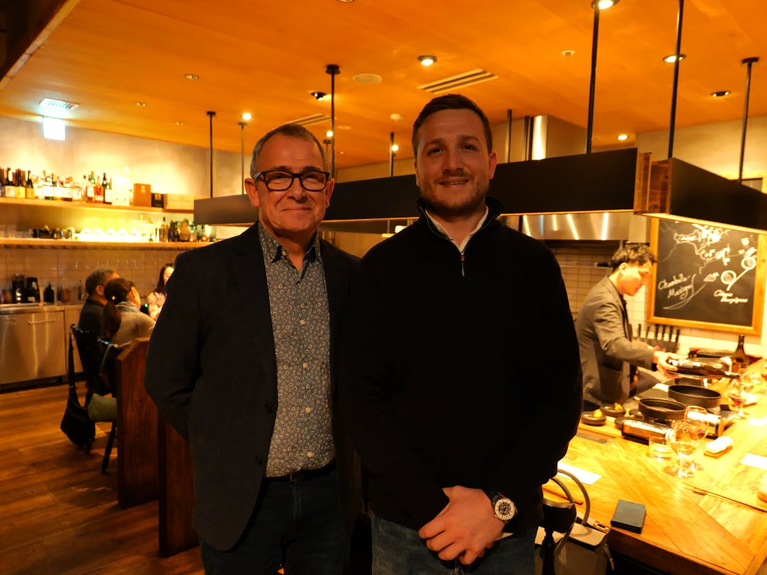 株式会社エー・ピーホールディングス(本社:東京都豊島区、代表取締役会長 兼 社長:米山久、以下APHD)が東京・麻布十番で運営する最上鴨(もがみがも)の専門店「十番 無鴨黒 –Na Camo guro-(じゅうばん なかもぐろ)」は、2025年12月13日(土)に、フランス・ブルゴーニュ地方シャンボールからワイン生産者ユドロ・バイエの造り手である現当主ドミニク・ル・グエン氏とその後継者であり息子のタンギ・ル・グエン氏を迎え、メーカーズディナーを開催しました。