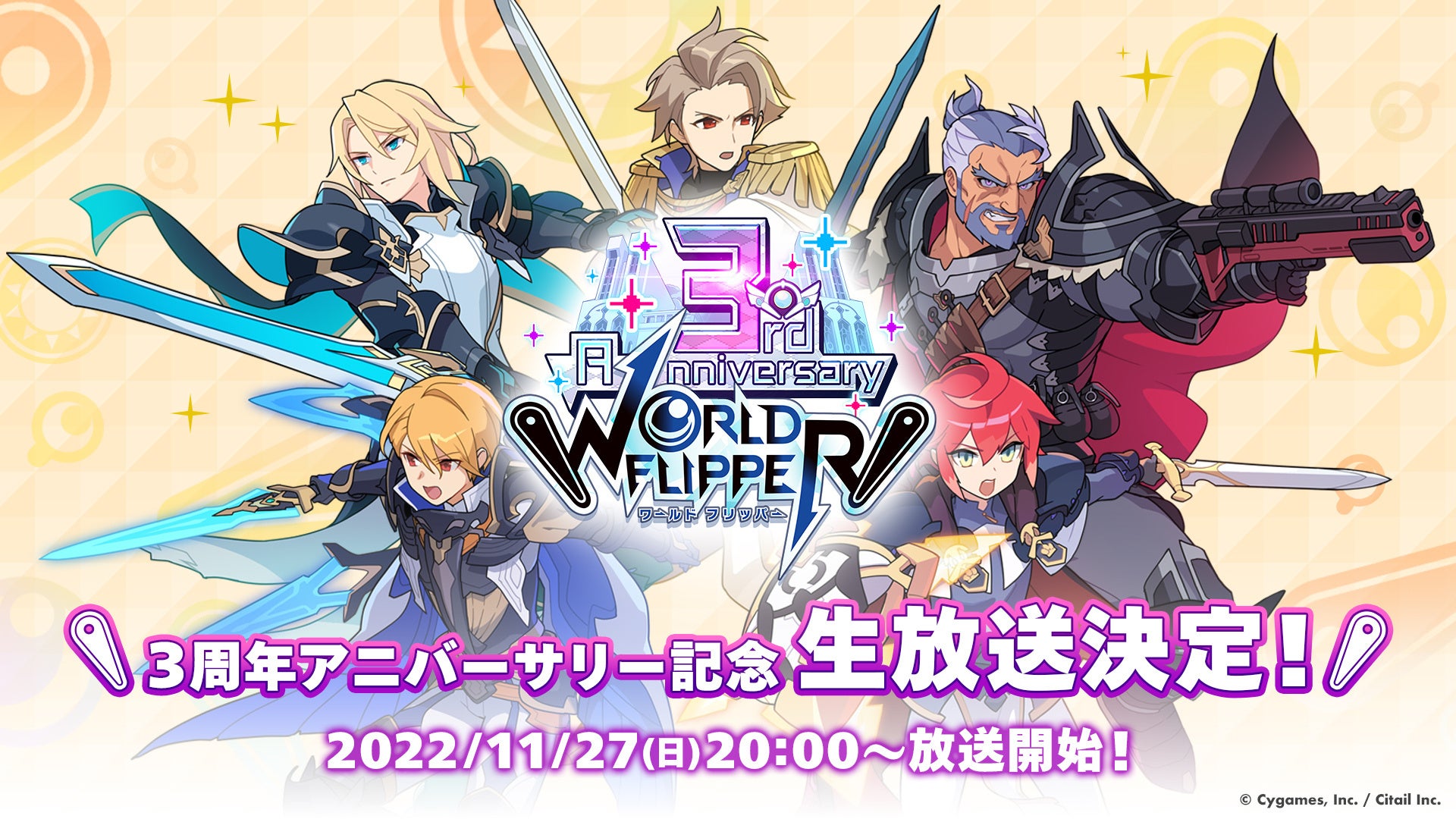 『WORLD FLIPPER(ワールドフリッパー)』3周年記念特設サイト公開! 「3周年アニバーサリー記念生放送」は11月27日(日)配信決定!