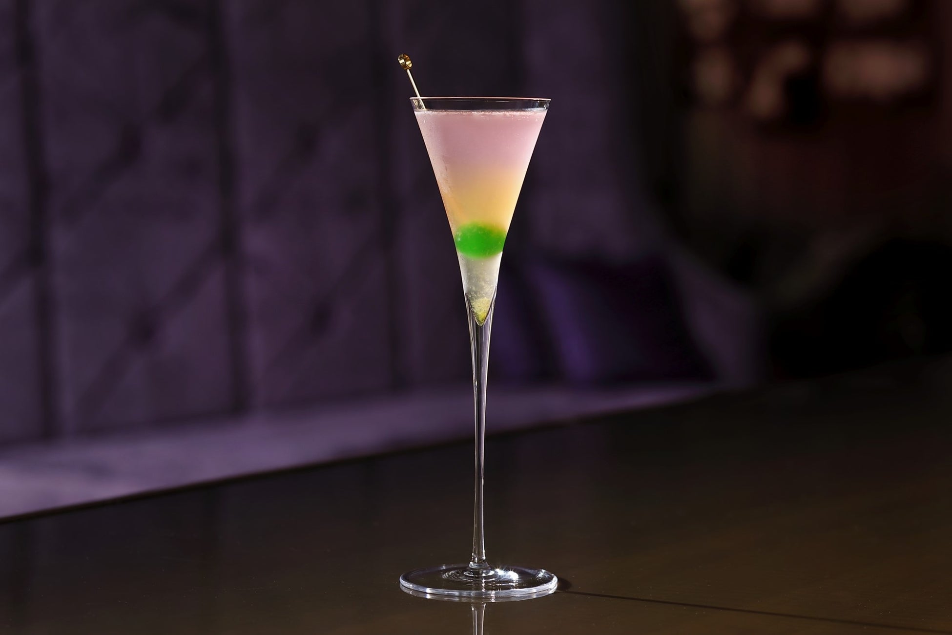 3色のグラデーションが日本の春を感じさせる、こころおどる一杯。