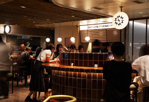渋谷サクラステージ4階内のビアホールで、ゆっくりとドローンショーとライブ映像の配信をご覧いただけます。