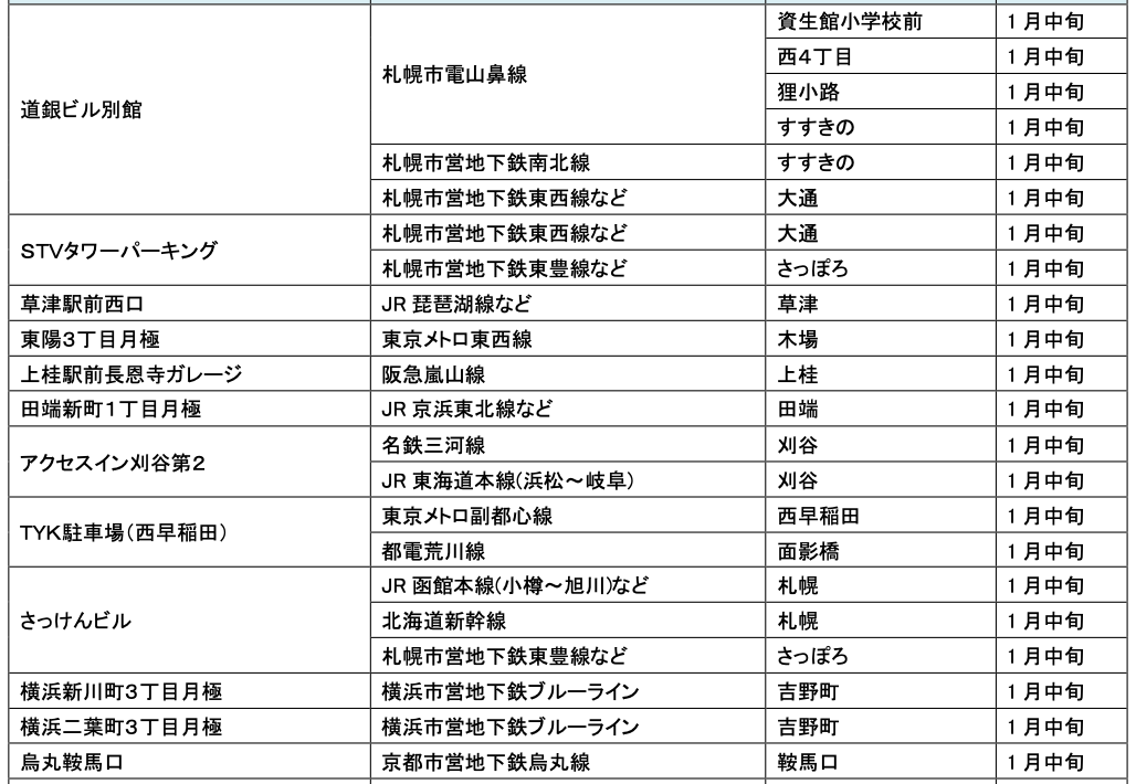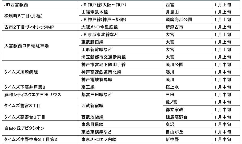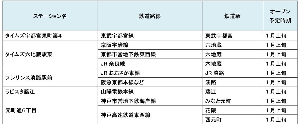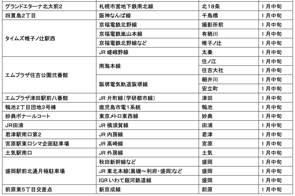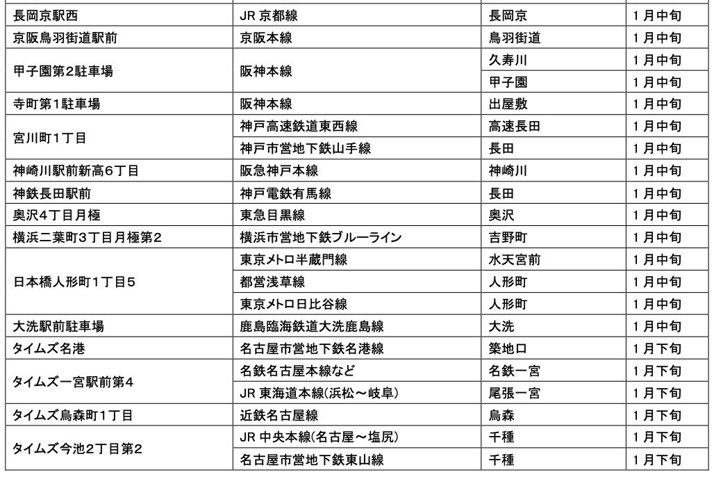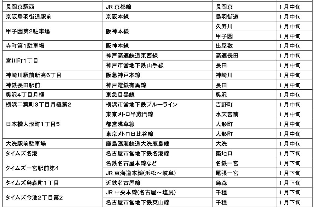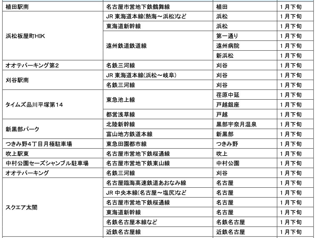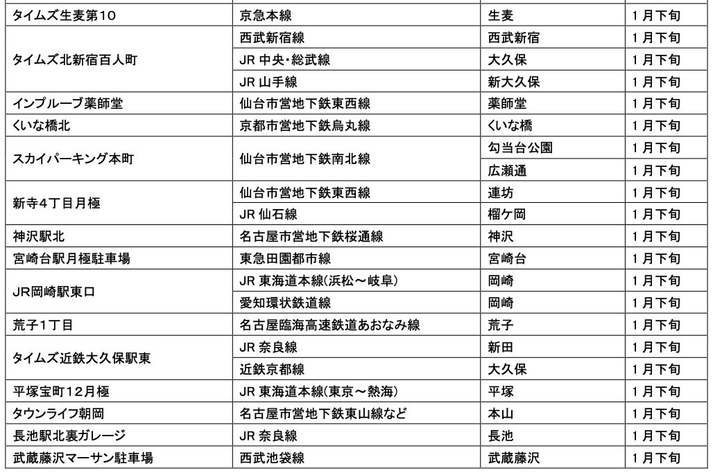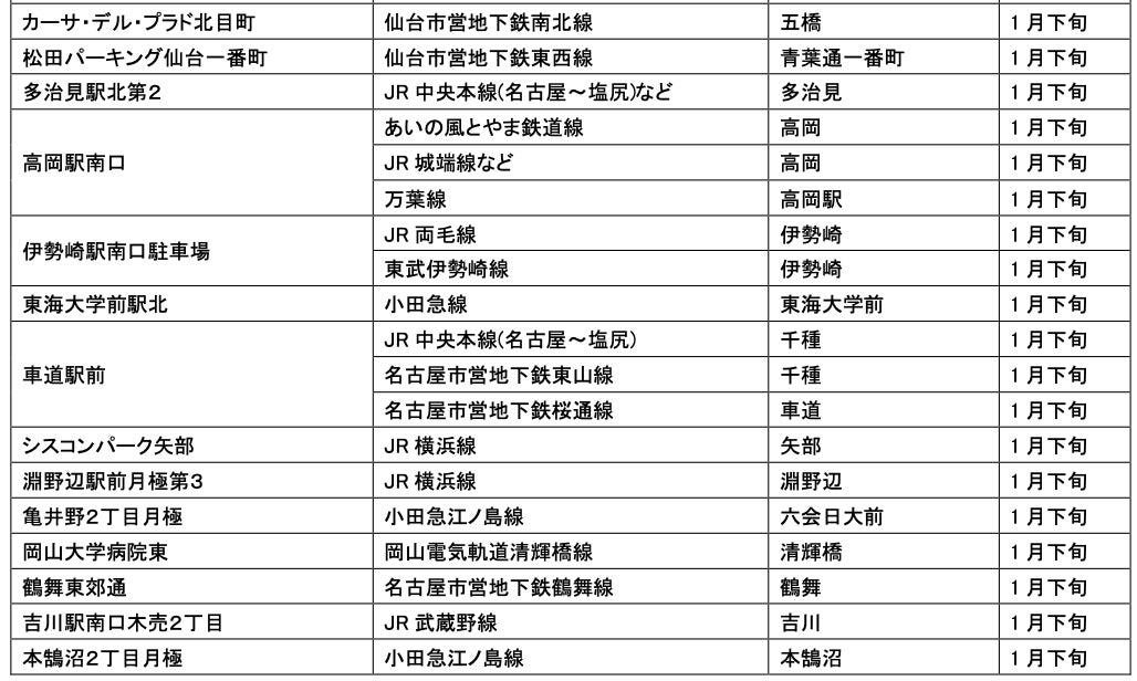 1月にオープンおよびオープン予定の「パーク&ライド」が可能な駐車場は9件、「レール&カーシェア」が可能なステーションは111件です。