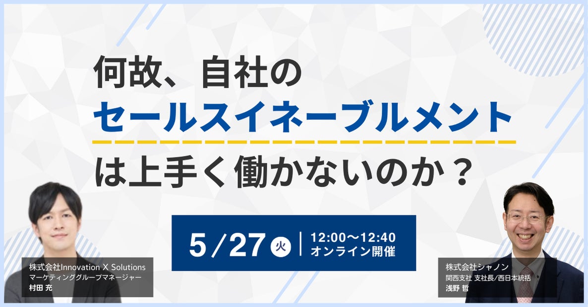 株式会社イノベーション(東証グロース 証券コード3970)のグループ会社である、株式会社Innovation X Solutions(本社:東京都渋谷区、代表取締役社長:歐陽 聖司、以下「Innovation X Solutions」)は、2025年5月27日(火)に「何故、自社のセールスイネーブルメントは上手く働かないのか?」をテーマとしたセミナーを株式会社シャノンと共催で開催します。
