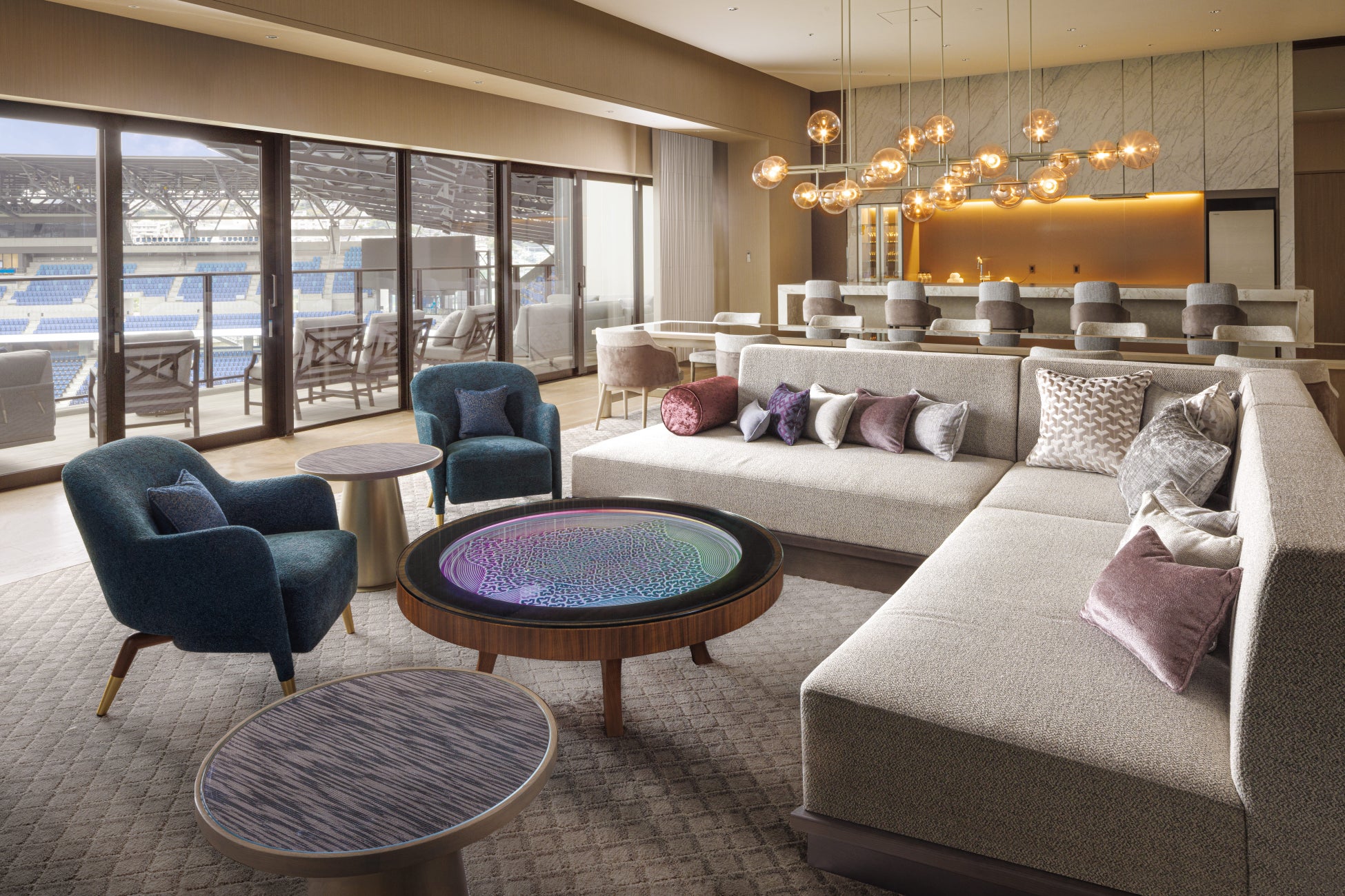 究極のプライベート空間として設計された当スイートルームは、リビング、ダイニング、専用キッチンに加え、趣の異なる2つのベッドルームを備えています。そして、壮大なサッカースタジアムの景色を一望する専用の広々としたバルコニーを完備。試合開催時には、特等席で、その興奮と熱気を独占していただけます。この唯一無二のラグジュアリー空間で、特別なサービスと非日常の体験をご提供いたします。