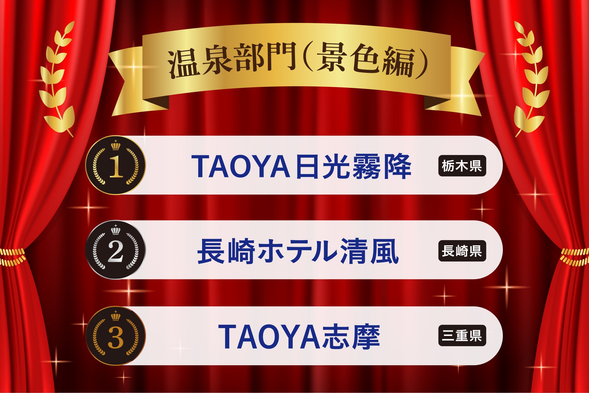 ~「温泉(泉質)」「温泉(景色)」「景観」「お料理」の4部門で頂点に輝くのは?~