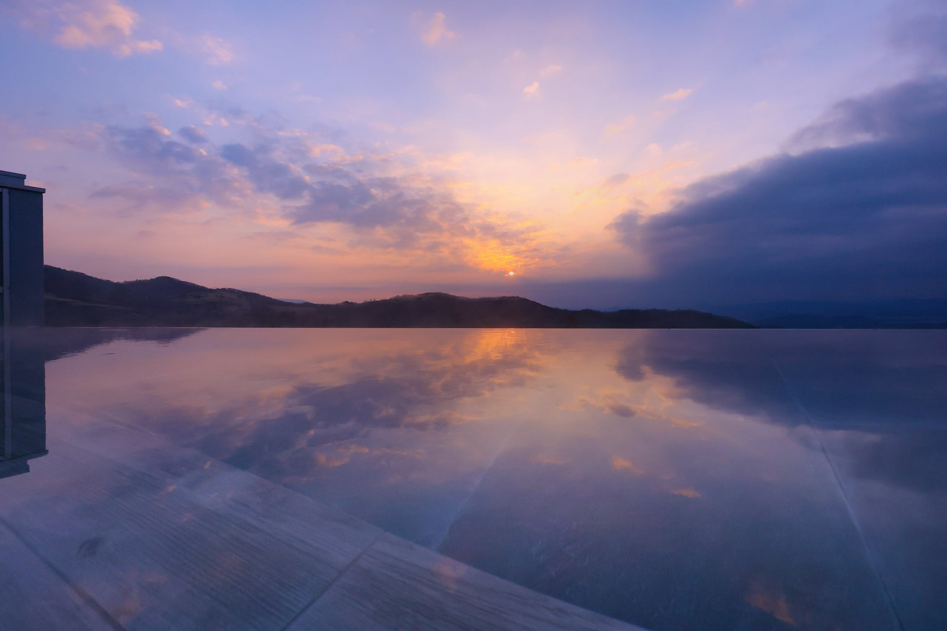 「稜線を染める朝焼けが最高にきれいでした。お風呂から写真が撮れないので余計に心に残っている気がします」