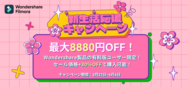 【最大8,880円OFF!】PC向け動画編集ソフトWondershare Filmoraシリーズが新生活応援キャンペーンを実施
