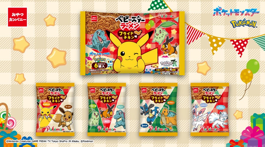 株式会社おやつカンパニー(本社所在地:三重県津市 代表取締役社長:横山正志)は、パーティーシーズンにもぴったりな個包装が6袋入ったポケモンデザインの「ベビースターラーメン(フライドチキン味)6袋入」を、2025年12月8日(月)より全国にて期間限定発売します。