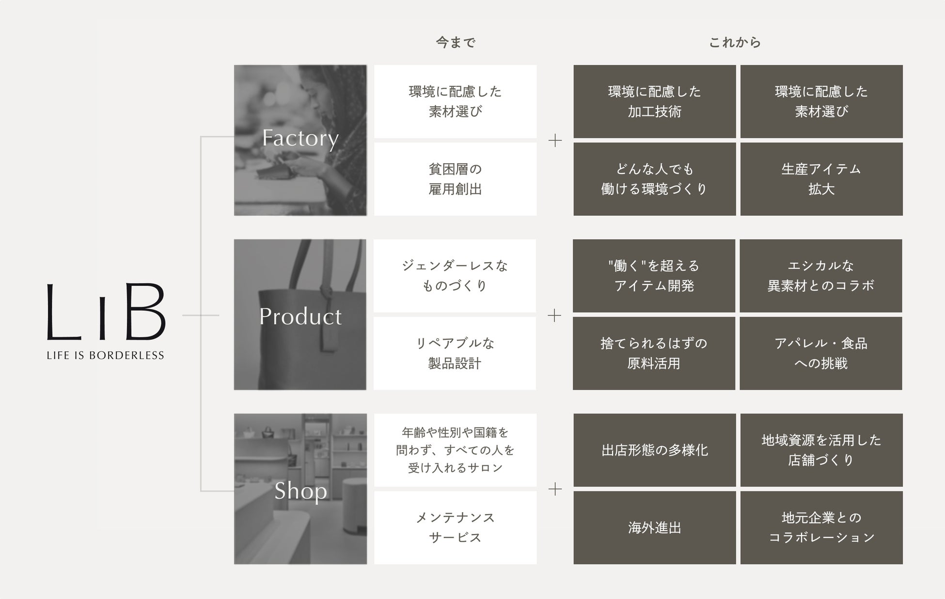 新しいブランド名「LIB」は、“Life Is Borderless”の頭文字を取ったものです。