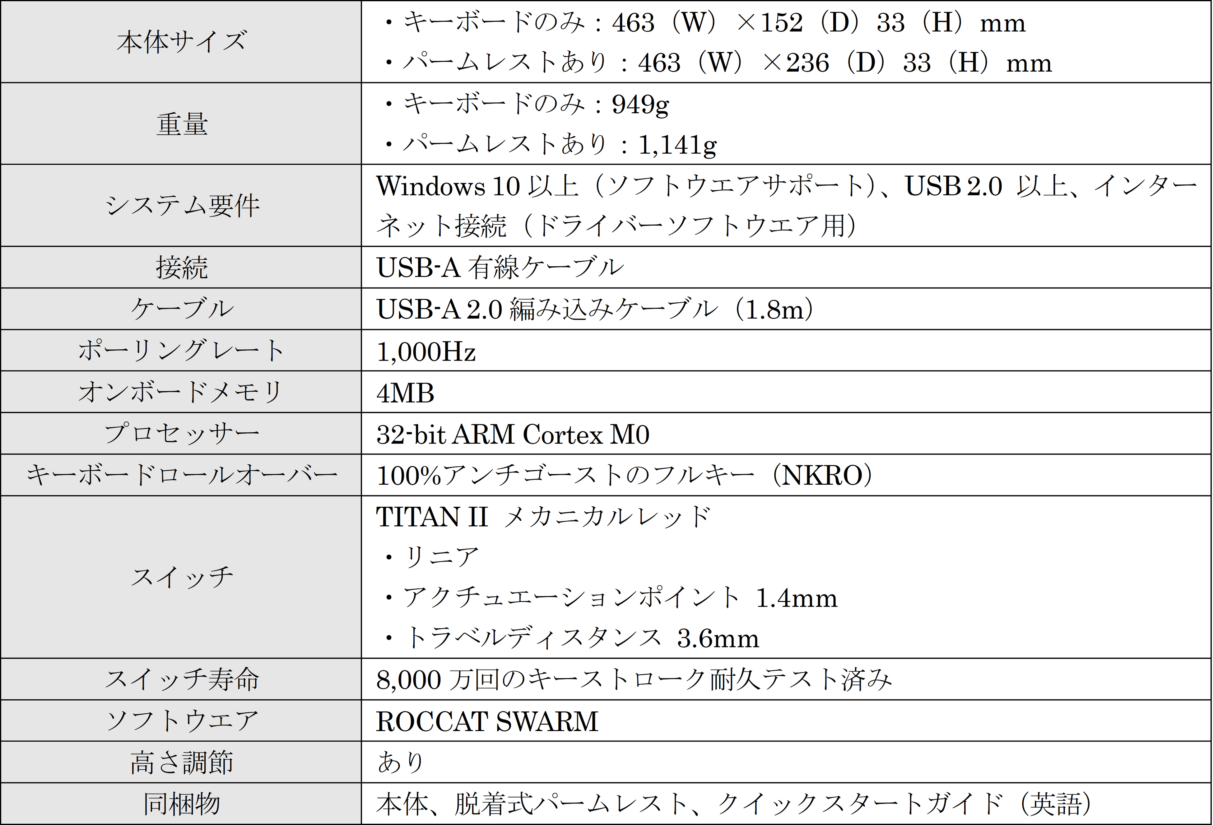 AIMOライティングが美しい高耐久のTITAN IIメカニカルスイッチを採用したパームレスト付きのゲーミングキーボードROCCAT「Vulcan II」の販売を開始