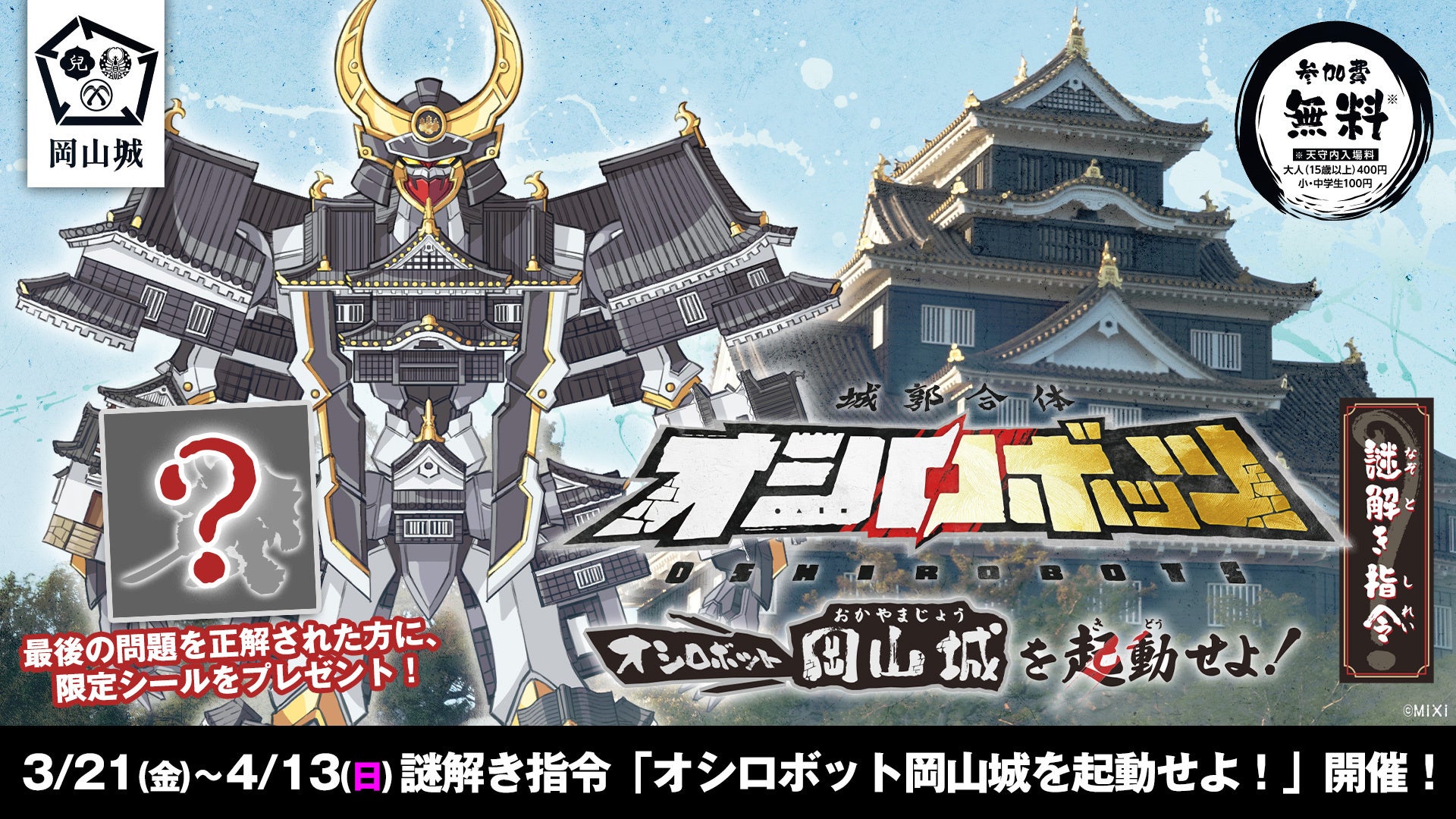 『城郭合体オシロボッツ』3月21日(金)~4月13日(日)岡山城城内にてオシロボット「岡山城」謎解きイベント開催!
