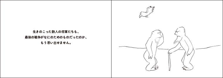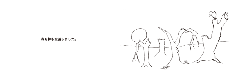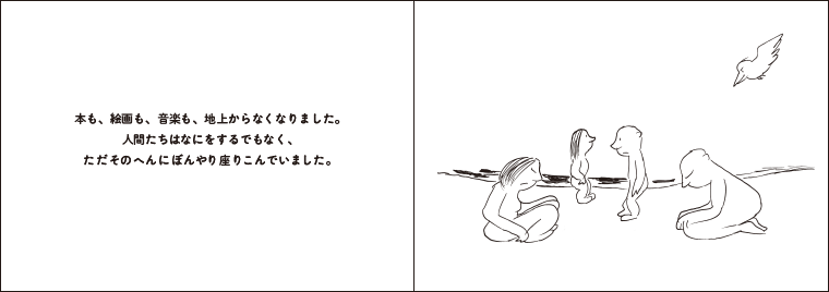本も、絵画も、音楽も、地上からなくなりました。人間たちはなにをするでもなく、ただそのへんにぼんやり座りこんでいました。