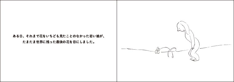 ある日、それまで花をいちども見たことのなかった若い娘が、たまたま世界に残った最後の花を目にしました。