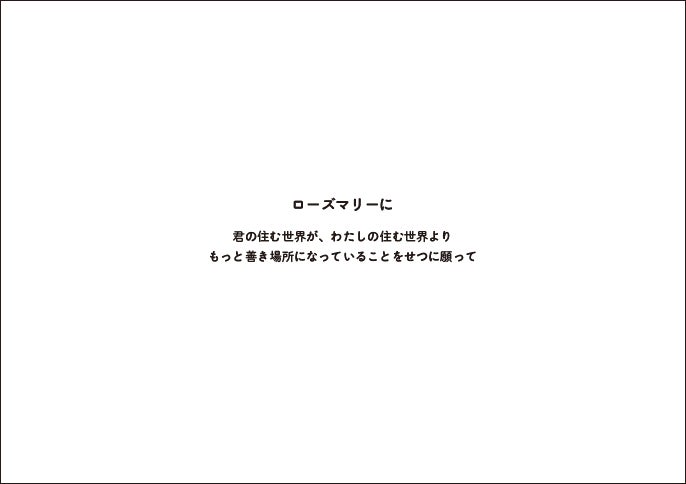 サーバーが願った通り、ローズマリーが住んだ世界、そして、わたしたちが住む世界は「もっと善き場所」になっているでしょうか。この本に込められた平和への想いを、わたしたちはどのように受け止めることができるでしょうか。