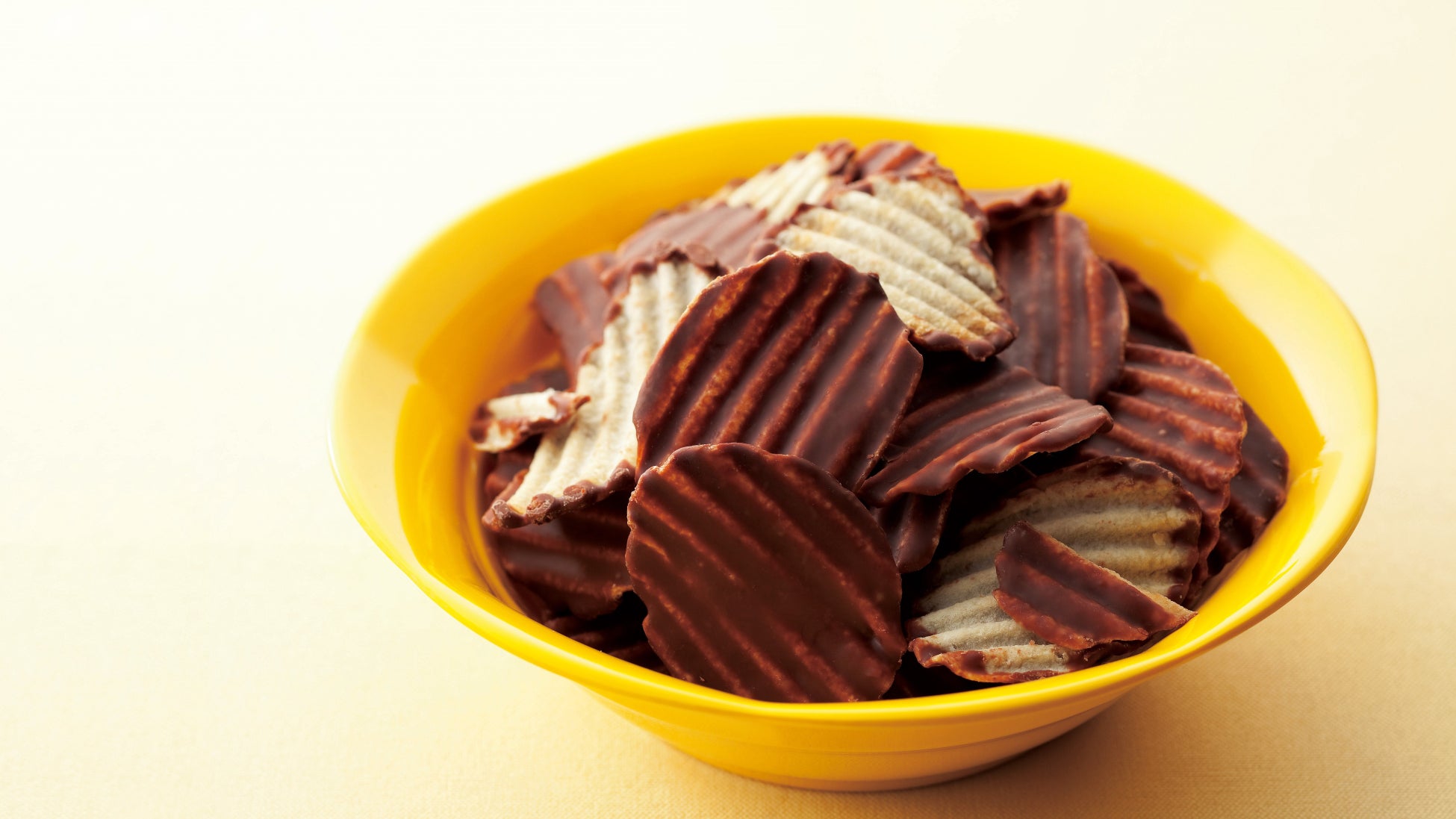 ポテトチップとチョコレート、意外な組み合わせから生まれた大ヒットのおいしさ。 パリッとした軽快な食感のポテトチップの片面に、口どけの良いチョコレートをコーティングしました。 チョコレートの甘さとポテトチップの塩味の絶妙なバランスがクセになるおいしさです。