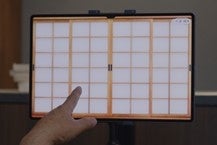 照度センサーが部屋の明るさを感知し、リアルタイムに障子の色で再現。相手の部屋の様子(消灯の有無)を直感的に確認できます。