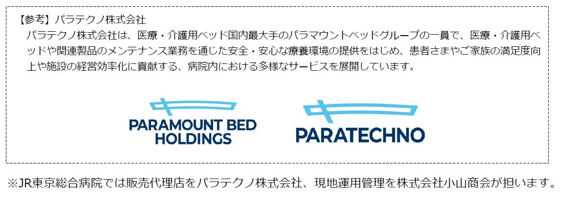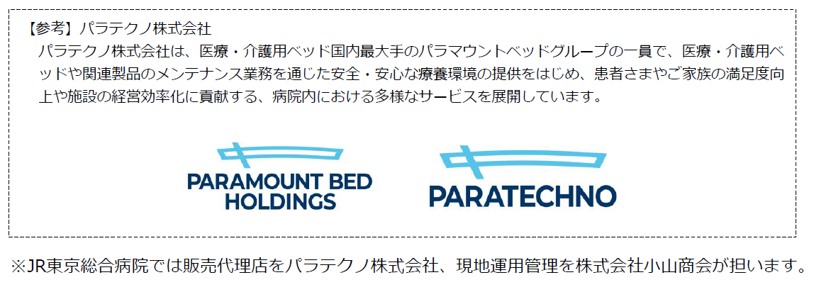 また、医療・介護用ベッド国内最大手「パラマウントベッドグループ」の一員であるパラテクノ株式会社と販売代理店契約を締結し、同社の全国規模のサービスネットワークを活かしたサポート体制で、共に全国の医療・福祉施設への導入拡大を目指します。